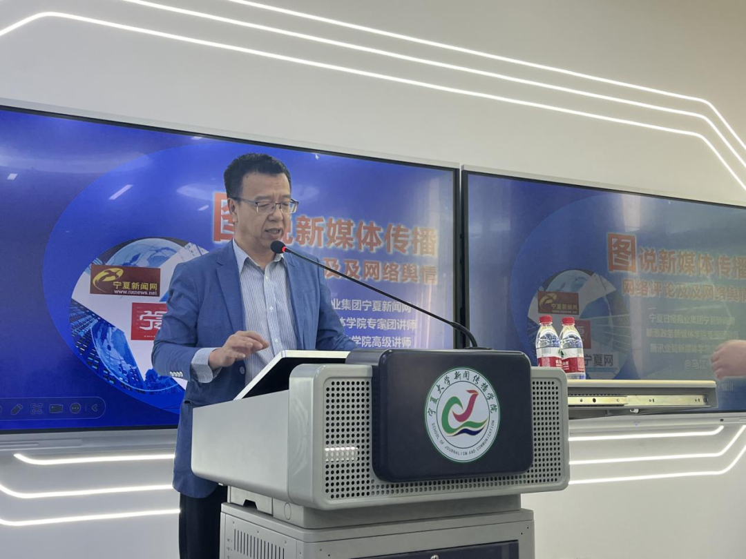 为帮助同学们更深一步了解新媒体传播、网络评论、网络舆情、新闻策划方面的研究。4月26日上午,公司特邀宁夏日报报业集团宁夏新闻网副总编辑马江做了题为《图说新媒体传播、网络评论及网络舆情》讲座。公司党支部书记苏洁老师到会,谢明辉教授主持讲座,2023级新闻与传播研究生、2021级卓越班和网新班的同学聆听了讲座。