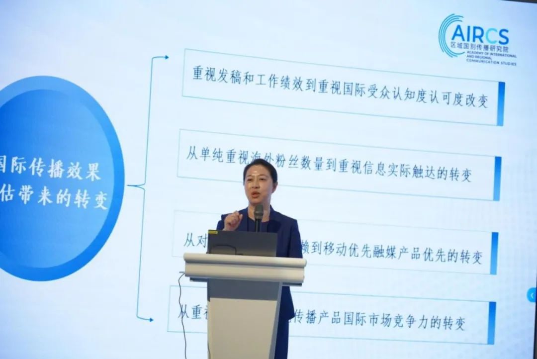 中国传媒大学区域国别传播研究院执行经理、教授、博士生导师周亭分享了关于《面向区域国别的传播效能评估体系建构》的研究成果。她聚焦国际传播研究中的核心议题——传播效果评估,分享了其系统性的前沿思考,深入探讨了融合行为数据、神经生理测量及社交媒体大数据等多模态研究方法,为科学评估受众认知与传播效能提供了新路径。