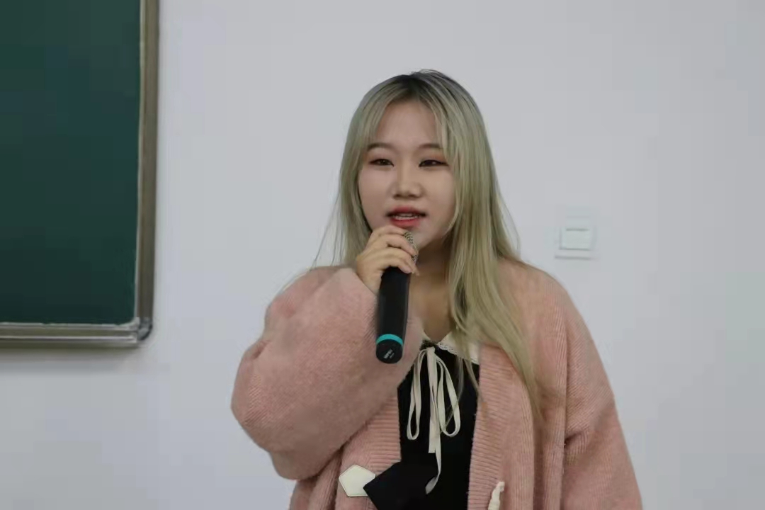 会议伊始,杨璠运用PPT向大家介绍和汇报新媒体实训项目的开展背景、项目成果,并对实训的未来做总结和展望,她谈到:“公司的初心,就是希望同学们能够通过实训,深度锻炼自己的新媒体实战能力,挖掘自己的潜力,从而达到独立制作新媒体产品的效果。”