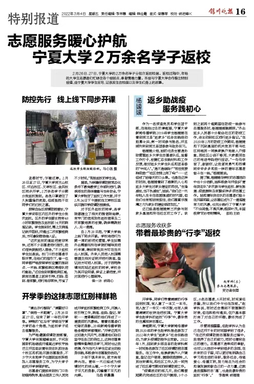 2月26日,开云2019级、2020级网络与新媒体专业的同学联动银川晚报对公司“2022年开学季”进行策划、专版已于3月4日刊出。