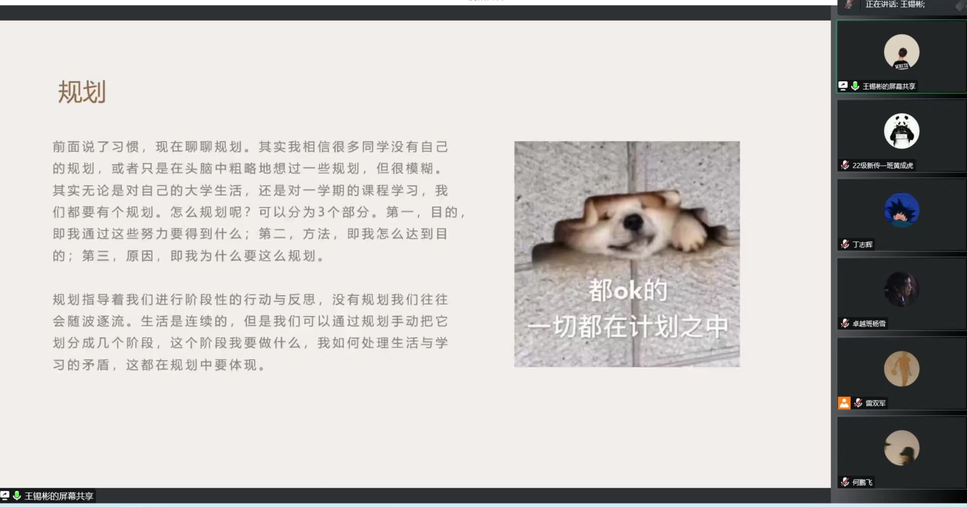 丁志辉向同学们详细介绍了一些学习软件,从时间管理与学习计划的角度,分享了自已使用学习软件的经验,为同学们在疫情线上学习期间合理分配时间提供了一种高效的途径。