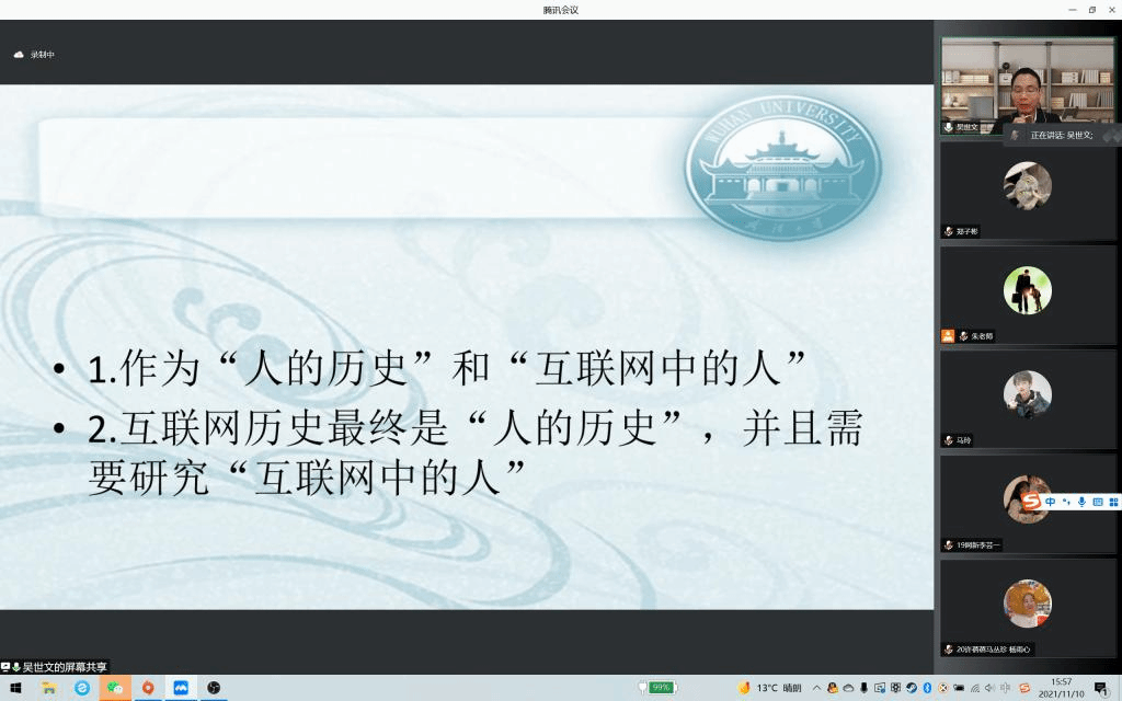 本次讲座,吴世文结合自身的研究经验,向同学们分享了做好互联网研究的心得体会,具体分为互联网历史是什么、为什么挖掘互联网历史、研究主题和研究路径、可能的未来四个方面,吴世文以例为证,与同学们交流了互联网历史研究的路径。