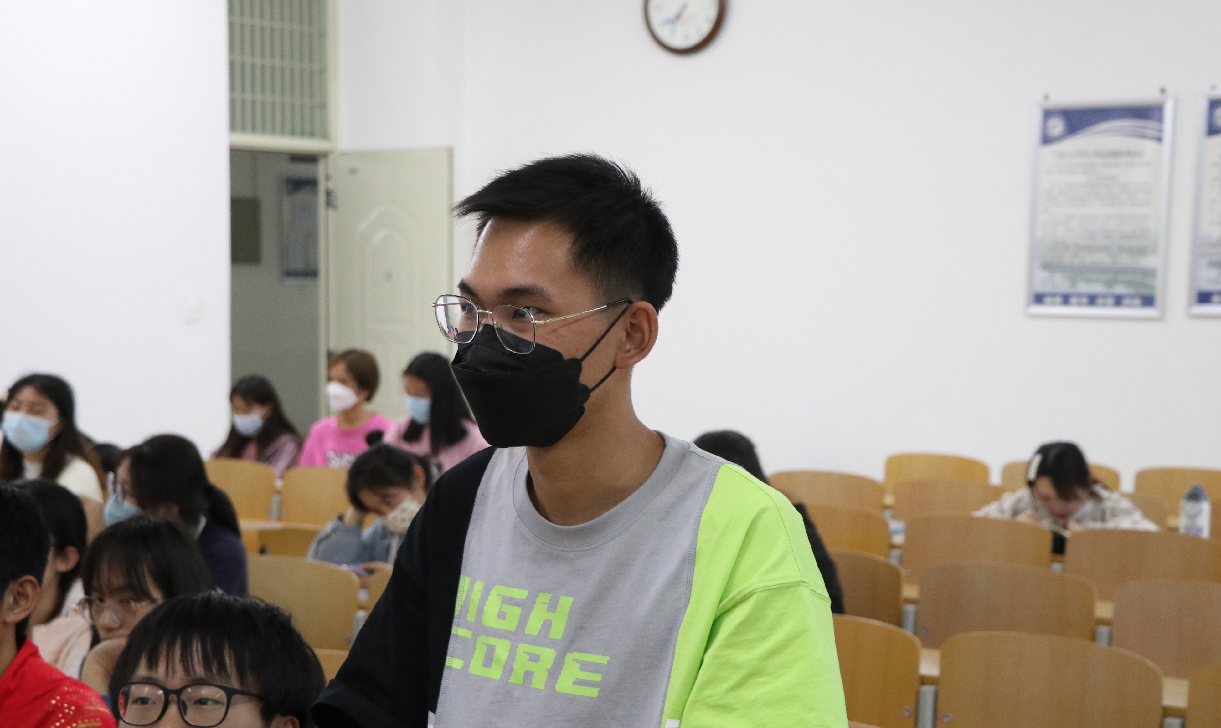 在互动过程中,21级2班同学冯枢豪分享个人观点:“做好个人防护就是尊重他人生命安全。疫情当前,我们要遵守防疫规则,做到不聚集、勤洗手、戴口罩、餐厅就餐、非必要不出校等。同时也要尽我所能积极配合、参加公司抗疫志愿工作,为抗疫献出自己的绵薄之力。”