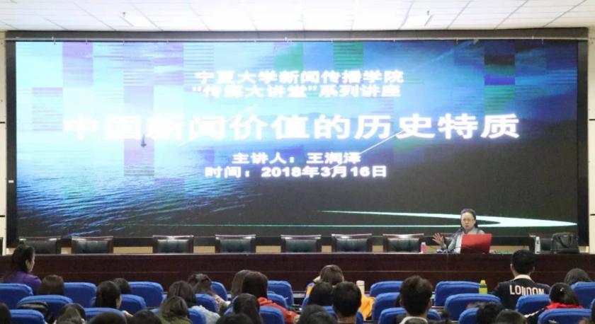 会上,王润泽教授从“中国历史文化的特殊之处”入手,通过对比中西方政治、文化等差异,使我们对“新闻文化具有特殊性”有了深入了解。随后,她为大家梳理了中国新闻传播事业史的发展过程,并提出:“我们要建立具有中国特色的价值理念,如:沟通、教化、真实、自由、客观。”最后,她还鼓励同学们通过深度报道锻炼自己的新闻实践能力,以此提升自己的新闻素养,写出更多具有专业性、高质量的新闻作品。