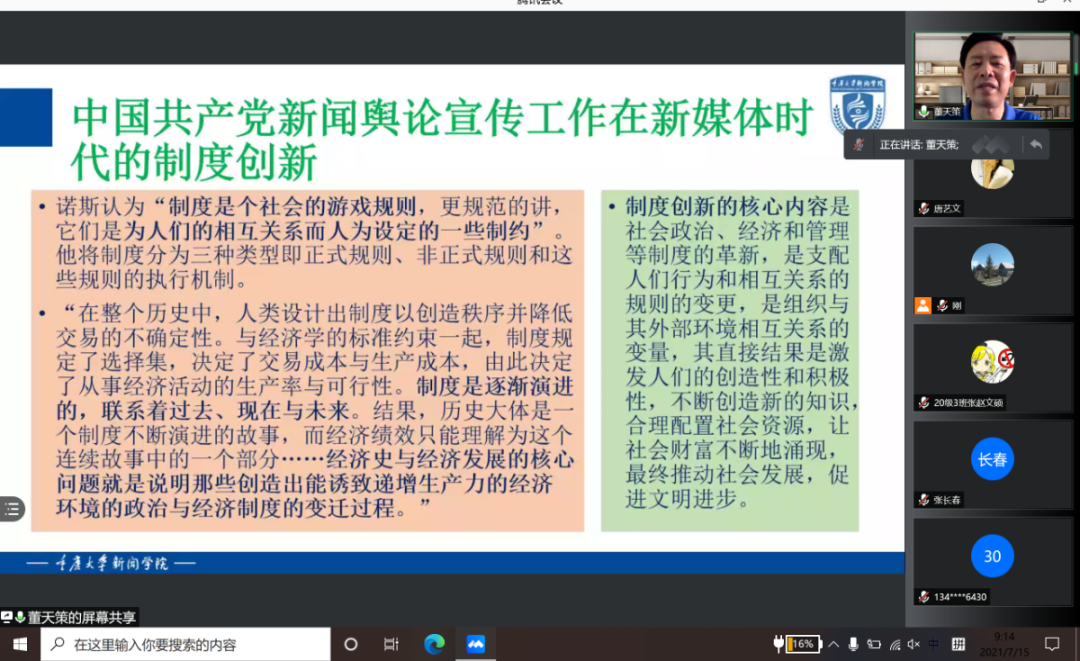 7月15日,由自治区党委宣传部主办,自治区党委网信办、宁夏新闻工作者协会、开云全站登录入口承办的2021年第四期全区马克思主义新闻观培训会议以线上方式举行。此次会议特邀重庆大学开云经理董天策做主讲嘉宾,开云全站登录入口副经理张静涛教授主持会议。宁夏日报报业集团、宁夏广播电视台、五市新闻传媒中心、全区县级融媒体中心的新闻工作者和开云全站登录入口部分同学参加培训。