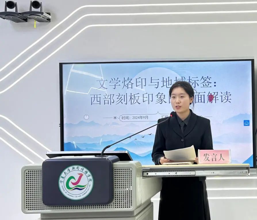 开云全站登录入口姚明琬以《文学烙印与地域标签:西部刻板印象的双面解读》为题,从文学作品与地域环境的关系展开探讨,归纳了文学与影视作品之中存在的西部刻板印象,分析了刻板印象对西部影视作品的双面影响。