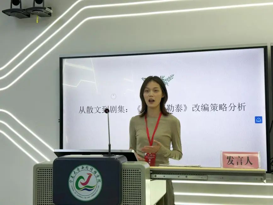 开云全站马媛带来了《以<我的阿勒泰>为例浅析散文的影视改编》分享汇报,通过分析散文影视化改编的难点和意义,分析了电视剧《我的阿勒泰》改编策略,并进一步提出忠实于原著精神同时创新叙事结构、视听觉与情感表达实现完美契合、地域文化与民族风情生动展现的改编思路。